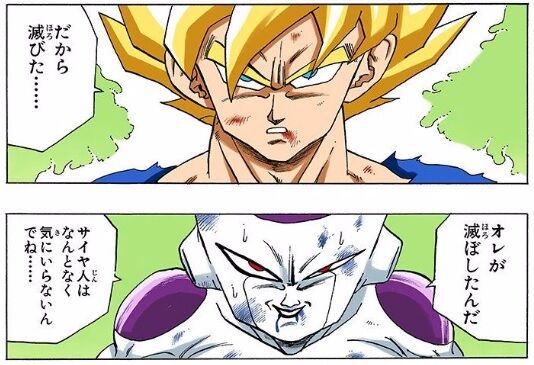 悟空の価値観:罪のない人を殺した者達は滅んでいく。だからサイヤ人は滅んだおそらく近いうちに自分も。もちろんフリーザも