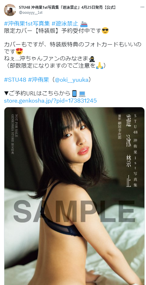 STU48沖侑果、SEXYランジェリー姿を解禁!1st写真集「遊泳禁止」の下着姿カット画像が刺激的… STU48 X Facebook はてブ LINE コピー 2023.04.11 スポンサーリンク STU48の沖侑果(23)が、2023年4月25日、1st写真集『遊泳禁止』を発売します。 発売に先駆け、特装版特典に付いてくるフォトカードの絵柄が公開され、セクシーな初ランジェリー姿が解禁されました。 沖侑果のプロフィール、1st写真集『遊泳禁止』の先行カット画像を総まとめました。 続きを読む
