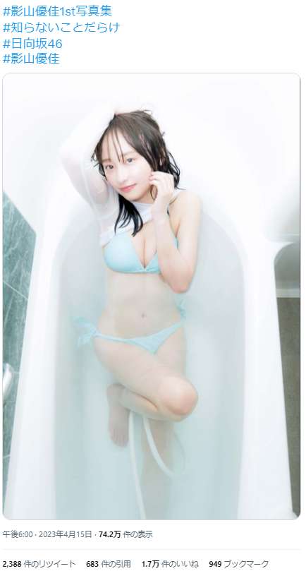 日向坂46影山優佳、水着姿で豊満バストを衝撃披露wwwバスタブでの艶ビキニ画像にファン大興奮!1st写真集の先行カットが大反響 日向坂46(けやき坂46) X Facebook はてブ LINE コピー 2023.04.15 スポンサーリンク アイドル界随一のサッカー好きで、昨年の『2022 FIFA ワールドカップ カタール』での鋭いコメントと予想で大ブレークした日向坂46影山優佳(21)が、2023年5月9日、初水着&ランジェリー姿を披露した1st写真集『知らないことだらけ』を発売します。 発売に先駆け、バスタブでの新水着ショットが公開されると、意外と豊満な胸の谷間にファンが衝撃を受けていました。 影山優佳のプロフィール、写真集『知らないことだらけ』の先行カット画像を総まとめました。 続きを読む