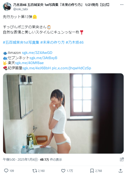 乃木坂46の五百城茉央(いおき まお=19)が、2025年1月21日、初水着&初ランジェリーを披露した1st写真集「未来の作り方」を小学館から発売します。