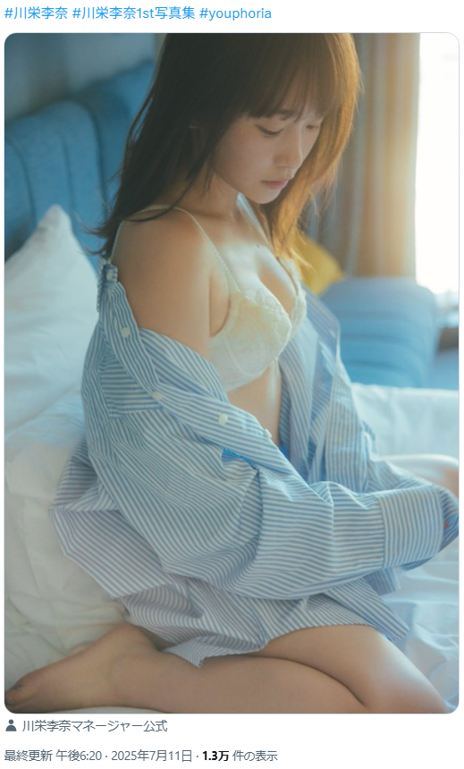 【画像】女優の川栄李奈さん(30)、ランジェリー姿を解禁wwwwwww1st写真集から美乳あらわな下着姿カットが公開!!! AKB48 X Facebook はてブ LINE コピー 2025.07.11 スポンサーリンク 元AKB48で、ドラマ『ダメマネ! -ダメなタレント、マネジメントします-』で主演を務めた大人気女優・川栄李奈(30)が、2025年8月22日、ファースト写真集『youphoria』を発売します。 発売に先駆け、大人の色気にドキドキする、ランジェリー姿の先行カットが解禁されました。 川栄李奈のプロフィール、ファースト写真集『youphoria』の先行カット画像を総まとめしました。 続きを読む