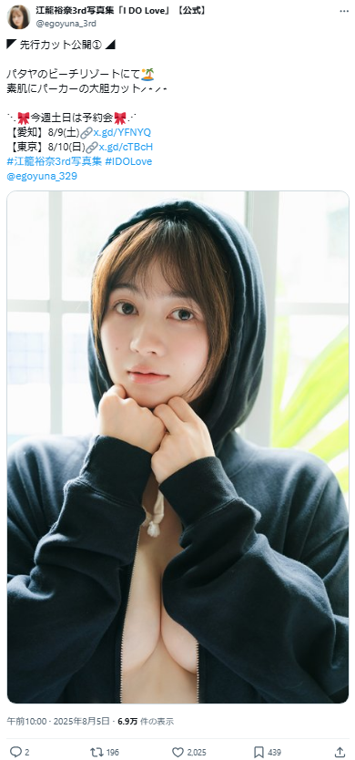 【画像】元SKE48のソロアイドル、ノーブラでおっぱいを限界露出wwwwwwww江籠裕奈、3rd写真集で大胆セクシーショットに挑戦!!! SKE48 X Facebook はてブ LINE コピー 2025.08.05 スポンサーリンク 元SKE48で現在は自ら作詞もするソロアイドルとして活動中の江籠裕奈(えご ゆうな=25歳)が、2025年8月20日、3rd写真集「I DO Love」を発売します。 発売に先駆け、素肌にパーカーの大胆ノーブラカットが解禁されました。 江籠裕奈のプロフィール、3rd写真集の先行カット&巨乳オフショット、1st&2nd写真集の画像をまとめました。 続きを読む