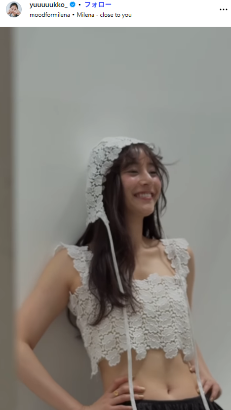 女優でモデルの新木優子(31)が、2025年8月7日、自身の公式Instagramを更新。表紙を飾ったファッション誌「sweet 8月号」のオフショットムービーを投稿すると、珍しく見せた生へそや胸谷間にファンから歓喜の声が殺到。8万件超の「いいね!」が寄せられていました。