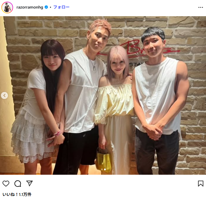 お笑いコンビ「レイザーラモン」のレイザーラモンHG(本名:住谷正樹=49)が、2025年8月10日、自身の公式Instagramを更新。「8/8は結婚記念日フォー!まる19年そして20年目に突入しました!今年で50才になる私の人生の19/50もの間一緒にいてくれてありがとう」のコメントとともに、奥さんで実業家の住谷杏奈さん(42)、長男(17)、長女(14)の4人が写った家族写真を投稿しました。2chでは、長男の筋肉美や、長女のパパ大好きっぷりに注目が集まっていました。