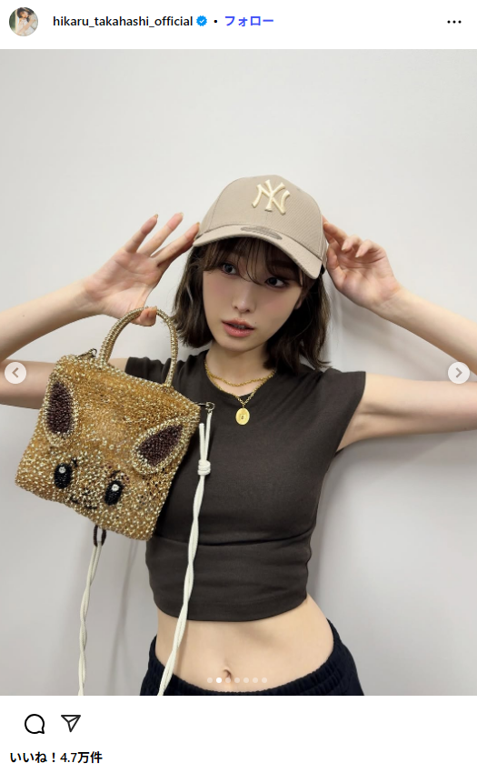 女優の高橋ひかる(23)が、2025年8月6日、自身の公式Instagramを更新。「最近の相棒。ポケどこの収録は特にいっしょ👨‍❤️‍💋‍👨」のコメントとともに、お気に入りのポケモンバッグを手に取った写真を投稿すると、極細のウエストと美ヘソ、美ワキを見せた大胆私服ショットにファンから興奮の声が殺到していました。