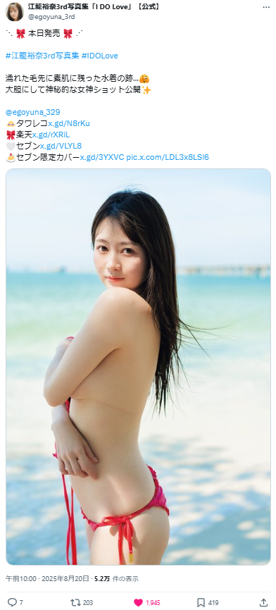 【半裸画像】元SKE48さん、ブラジャー外して大胆露出wwwwwww江籠裕奈、最新写真集から水着の跡がセクシーな“女神ショット”が解禁!!! SKE48 X Facebook はてブ LINE コピー 2025.08.20 スポンサーリンク 元SKE48で現在は自ら作詞もするソロアイドルとして活動中の江籠裕奈(えご ゆうな=25歳)が、2025年8月20日、3rd写真集「I DO Love」を発売しました。 発売当日、水着のブラジャーを外し、紐跡がセクシーで神秘的な女神ショットが解禁され、ファンから興奮の声が寄せられていました。 江籠裕奈のプロフィール、3rd写真集の先行カット&巨乳オフショット、1st&2nd写真集の画像をまとめました。 続きを読む