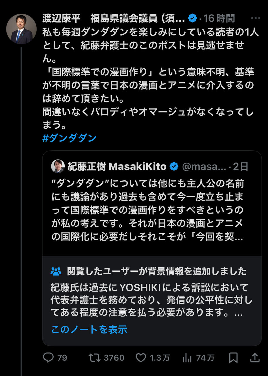 【悲報】「ダンダダン」のパロディ問題、ついにYOSHIKIを飛び越えて議員まで参戦してしまう!! 少年ジャンプ X Facebook はてブ LINE コピー 2025.08.26 スポンサーリンク 1: 2025/08/25(月) ついにYOSHIKIを飛び越えて議員まで参戦してしまう2: 2025/08/25(月) 金が絡むと厄介ね3: 2025/08/25(月) 主人公の名前に議論なんてあったの6: 2025/08/25(月)議論があります(俺が気に食わない) 続きを読む