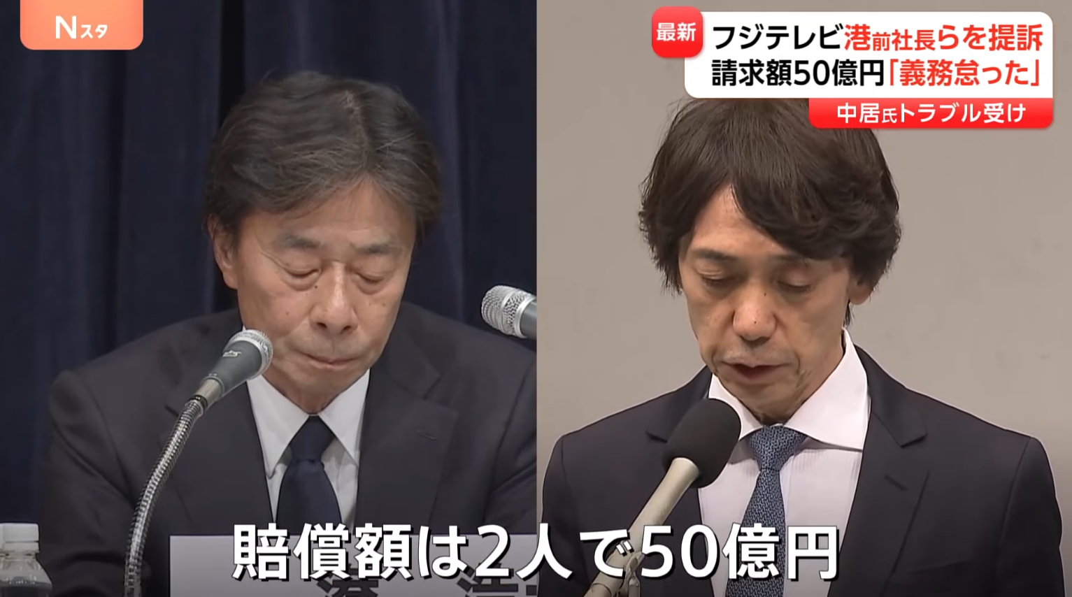 【超速報】フジテレビ、港元社長と大多元専務に50億円の損害賠償請求を提起