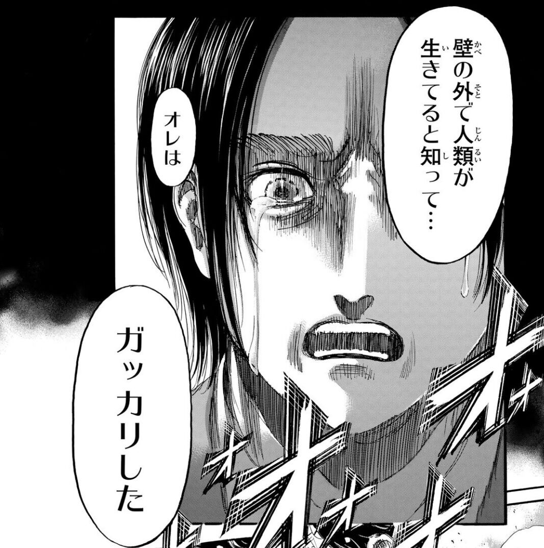未開拓の場所をアルミンと冒険したかった少年さながらの夢をモチベーションにずっと頑張ってきたのに