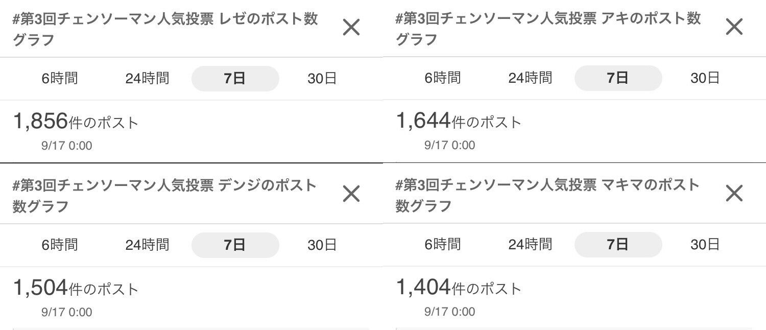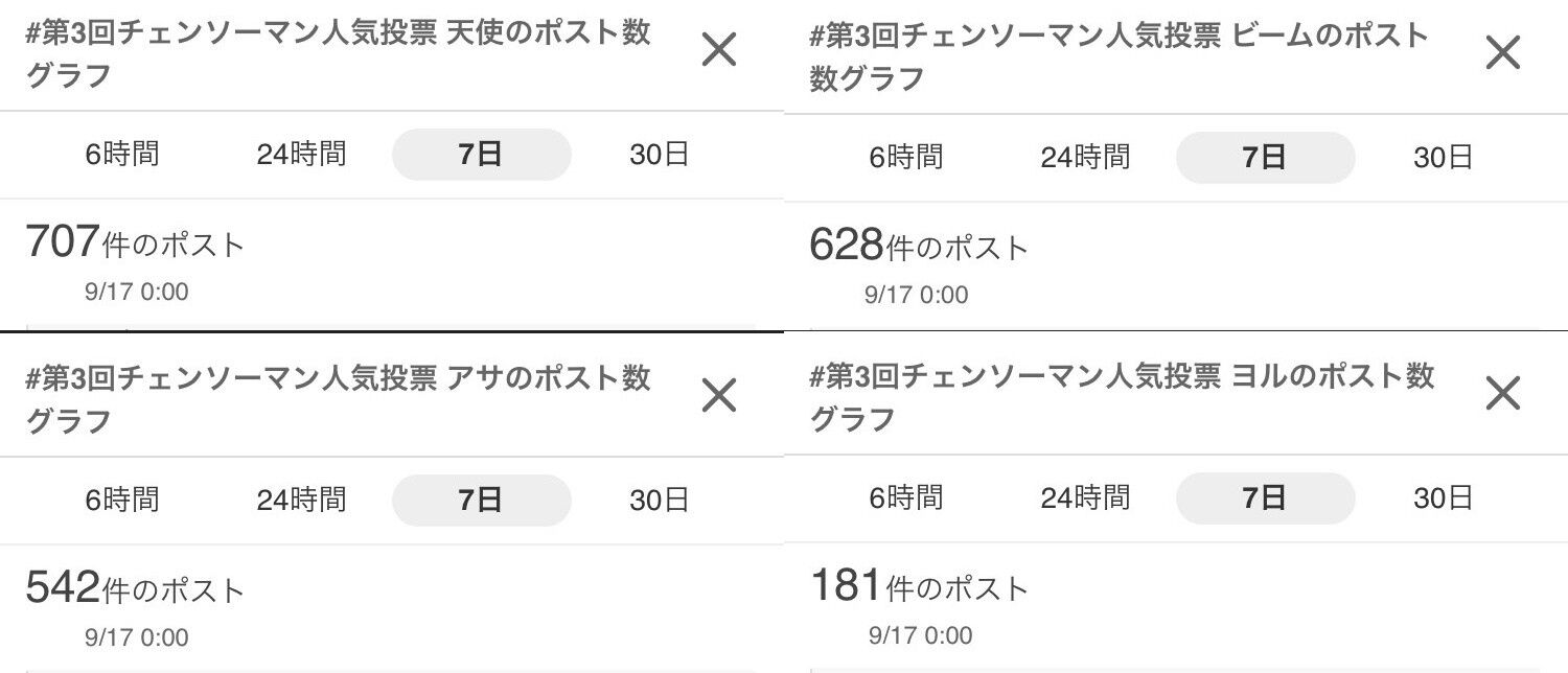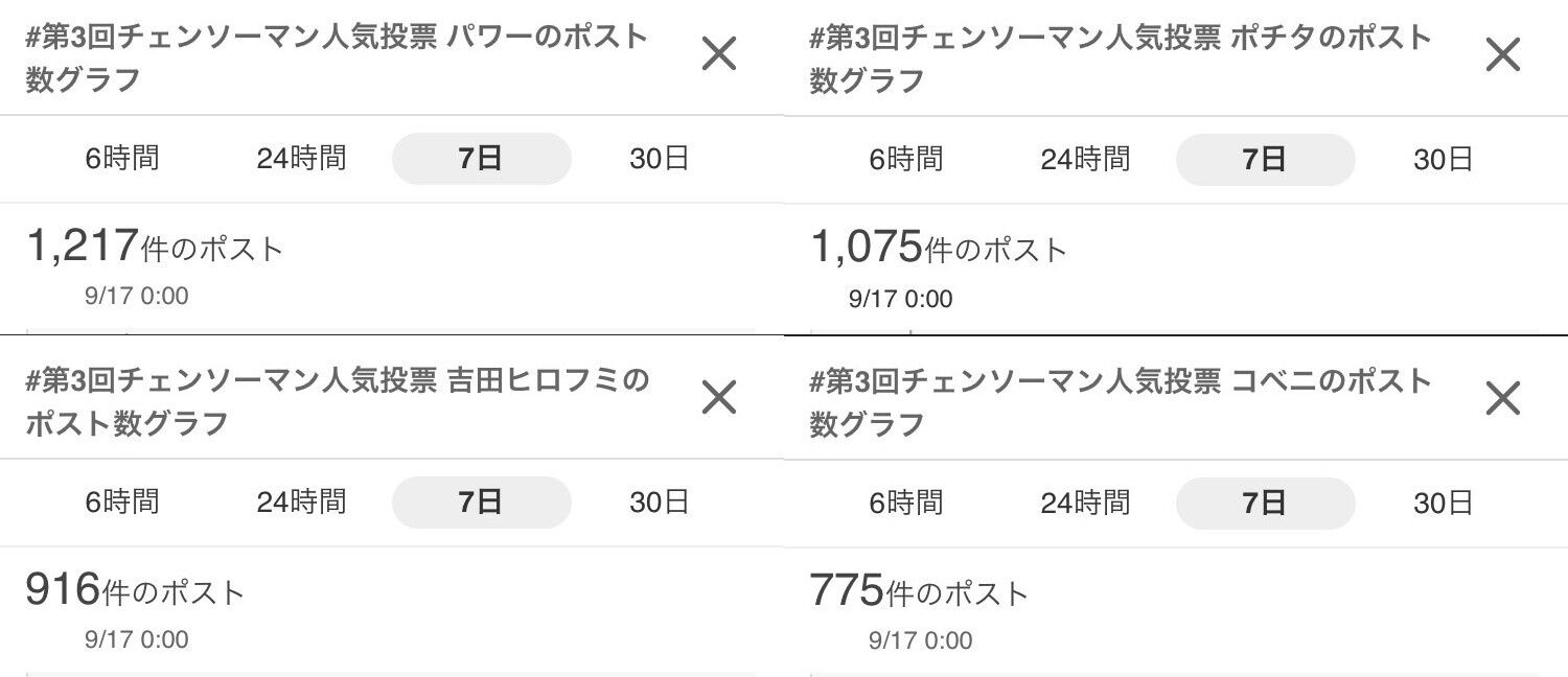 「#第3回チェンソーマン人気投票 キャラ名」の週間ポスト数