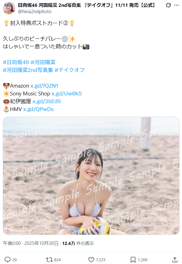 発売に先駆け、封入特典ポストカード第2弾が解禁され、ビキニ姿で見せた豊満なバストにファンから興奮の声が殺到していました。