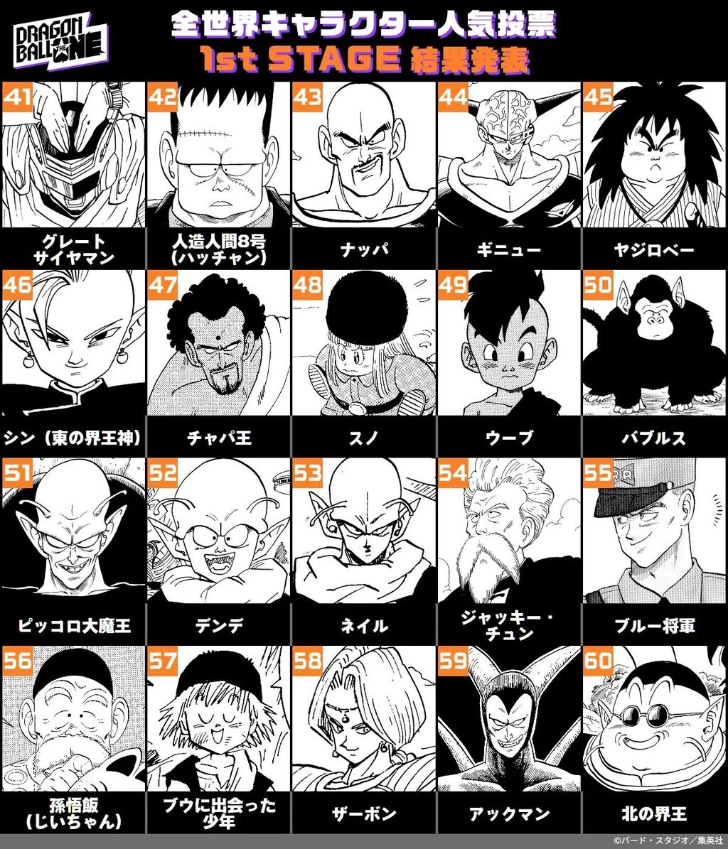 【画像】「ドラゴンボール」全世界キャラ人気投票、1stステージ結果発表!!人造人間18号がまさかの大健闘wwww