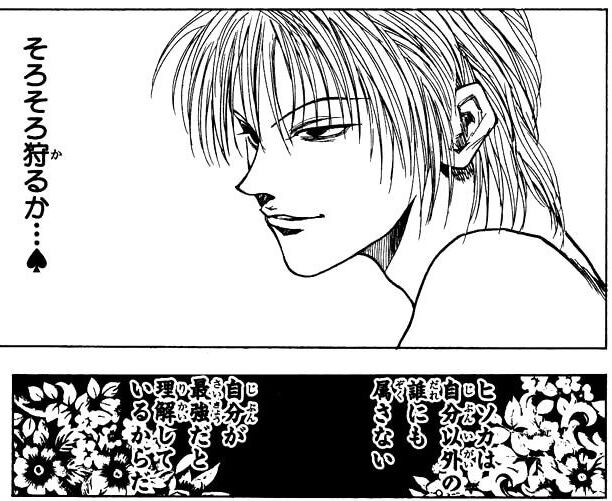 「ヒソカは自分以外の誰にも属さない 自分が最強だと理解しているからだ」
