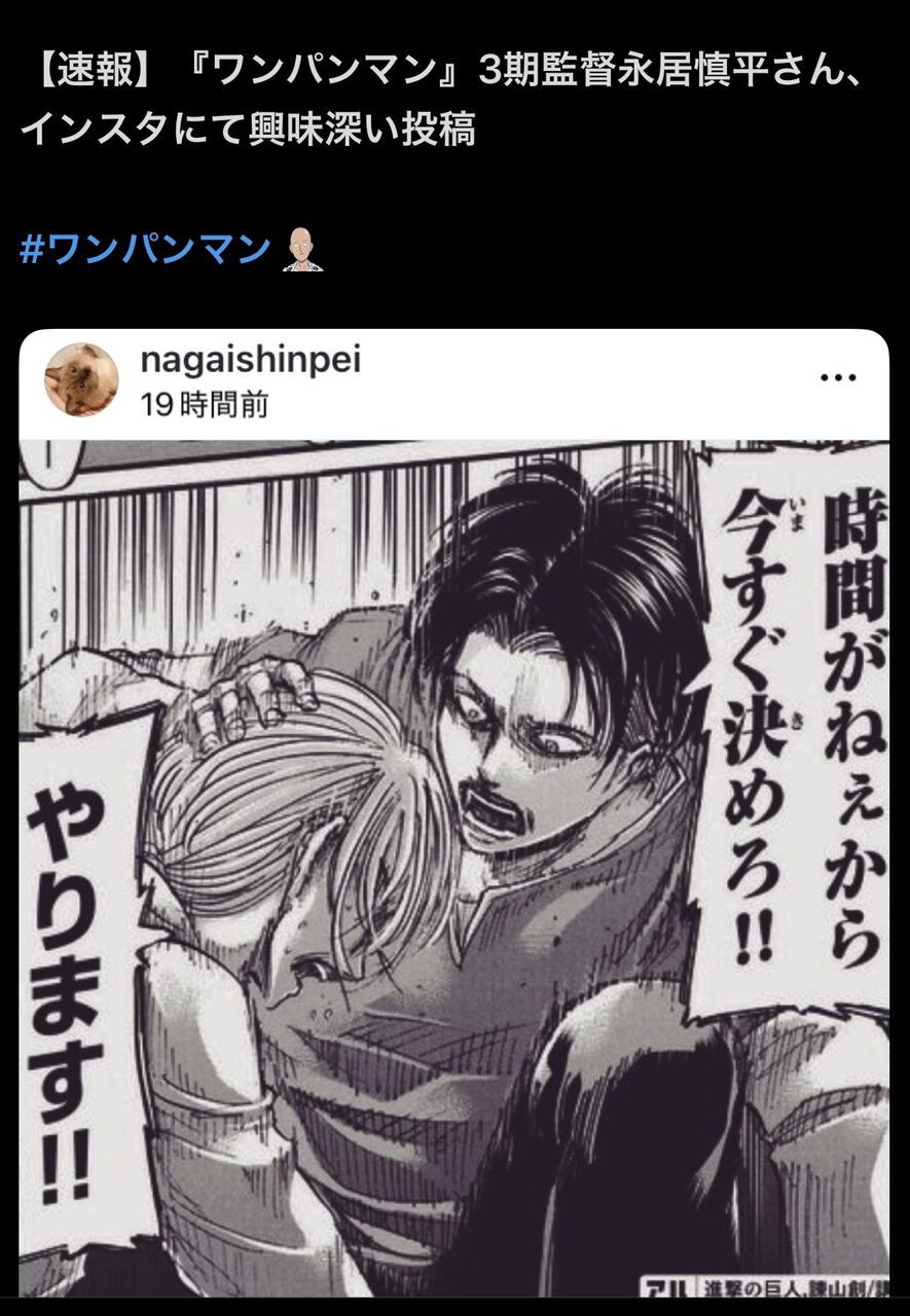 【画像】アニメ「ワンパンマン」第3期の監督、インスタに意味深な投稿をする・・・ ワンパンマン X Facebook はてブ LINE コピー 2025.12.30 スポンサーリンク 1: 2025/12/30(火) ONEの原作、アニメ1期共に世界的に大人気の作品がこの有様ってマジでどうなってんだよ2: 2025/12/30(火) >>1具体的に3: 2025/12/30(火) >>2ワンフレームマン4: 2025/12/30(火) また長文お気持ちやるのかな 続きを読む