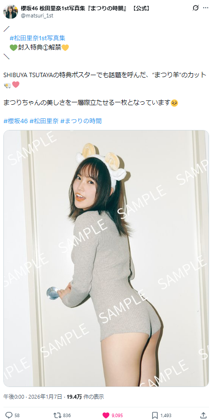 【画像】櫻坂46松田里奈のプリ尻、エッチすぎると話題にwwwwwwピチピチボディラインが水着より刺さると話題に!!! グラビアアイドル・水着姿 X Facebook はてブ LINE コピー 2026.01.07 スポンサーリンク 「ネプリーグ珍回答事件」で知られる櫻坂46のキャプテン・松田里奈(26)が、2026年1月20日、1st写真集「まつりの時間」を幻冬舎から発売します。 発売に先駆け、封入特典全6種のうち1種目が公開されました。“まつり羊”に扮し、美尻を大胆に見せたカットにファンからは「水着よりエロい」と興奮の声が殺到していました。 松田里奈のプロフィール、1st写真集の先行カット、過去のグラビア画像をまとめました。 続きを読む