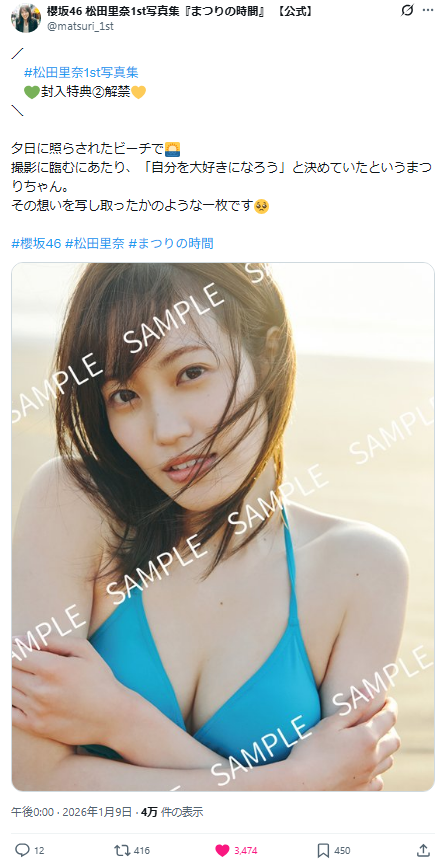 【画像】櫻坂46松田里奈さん、ビキニ姿で胸の谷間を大胆露出してしまうwwwww1st写真集の水着姿封入特典にファン大興奮!!! 櫻坂46(欅坂46) X Facebook はてブ LINE コピー 2026.01.09 スポンサーリンク 「ネプリーグ珍回答事件」で知られる櫻坂46のキャプテン・松田里奈(26)が、2026年1月20日、1st写真集「まつりの時間」を幻冬舎から発売します。 発売に先駆け、封入特典全6種のうち第2弾が公開されました。初水着姿で胸の谷間を強調したグラドルのようなポーズにファンから興奮の声が殺到していました。 松田里奈のプロフィール、1st写真集の先行カット、過去のグラビア画像をまとめました。 続きを読む