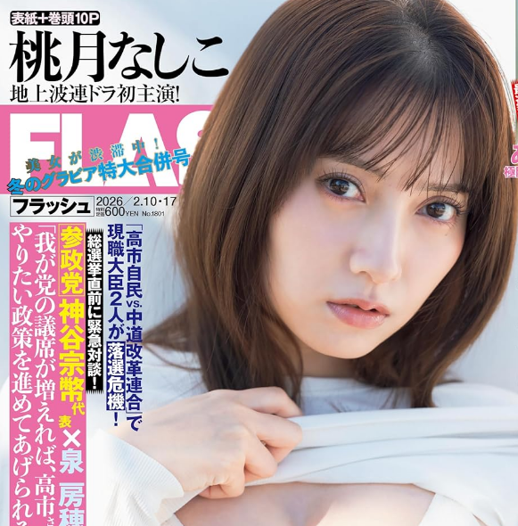 「おはスタ」レギュラーや「サカイ引越センター」のCMなどでおなじみで、コスプレイヤー、モデル、女優とマルチに活躍する桃月なしこ(30歳Fカップ)が、2026年1月27日発売の雑誌「週刊FLASH」で、表紙&巻頭グラビアを飾りました。