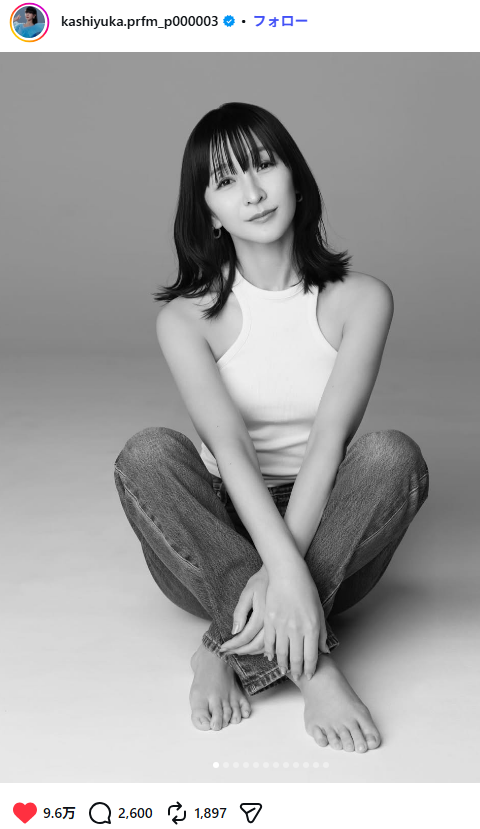 2025年12月31日をもって「コールドスリープ」と称して活動を休止している3人組テクノポップユニット「Perfume」のかしゆか(本名:樫野有香=37)が、2026年1月27日、自身の公式Instagramを更新。「New me.」のコメントとともに、トレードマークのロングヘアをばっさりカットしたイメチェン写真を投稿すると、ファンから称賛の声が殺到。10万件超の「いいね!」が寄せられていました。