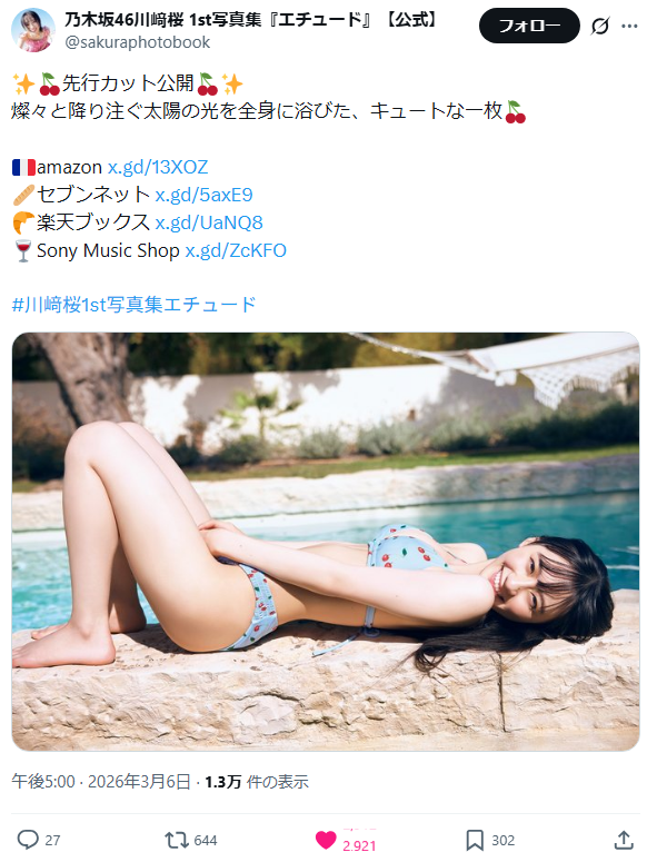 発売に先駆け、燦々(さんさん)と降り注ぐ太陽の光を全身に浴びた、ビキニ姿の先行カットが解禁され、ファンから興奮の声が殺到していました。