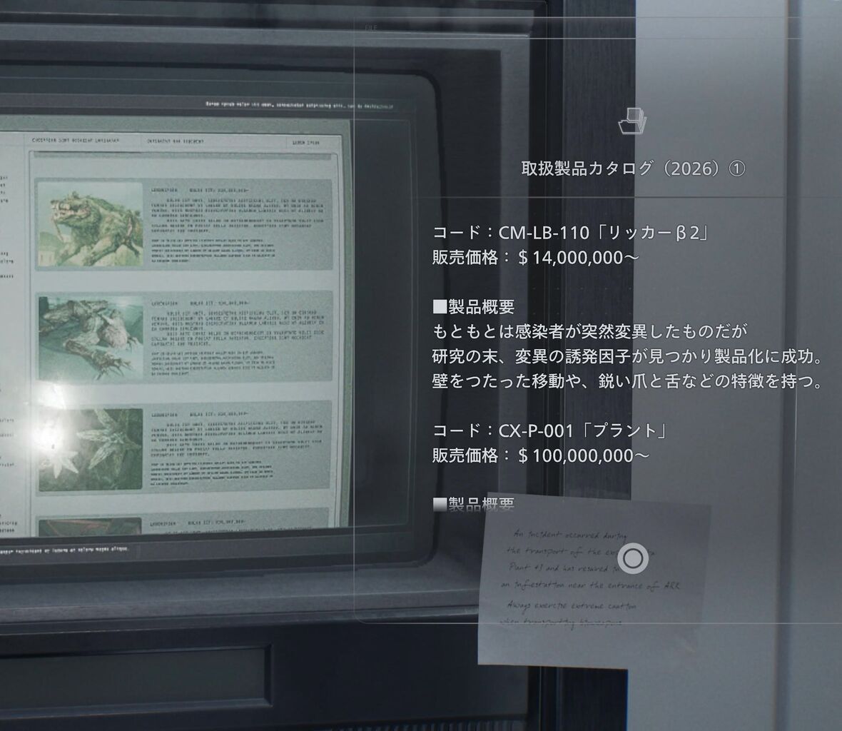バイオの組織「生物兵器リッカー、こちら一体につき1400万となっております」