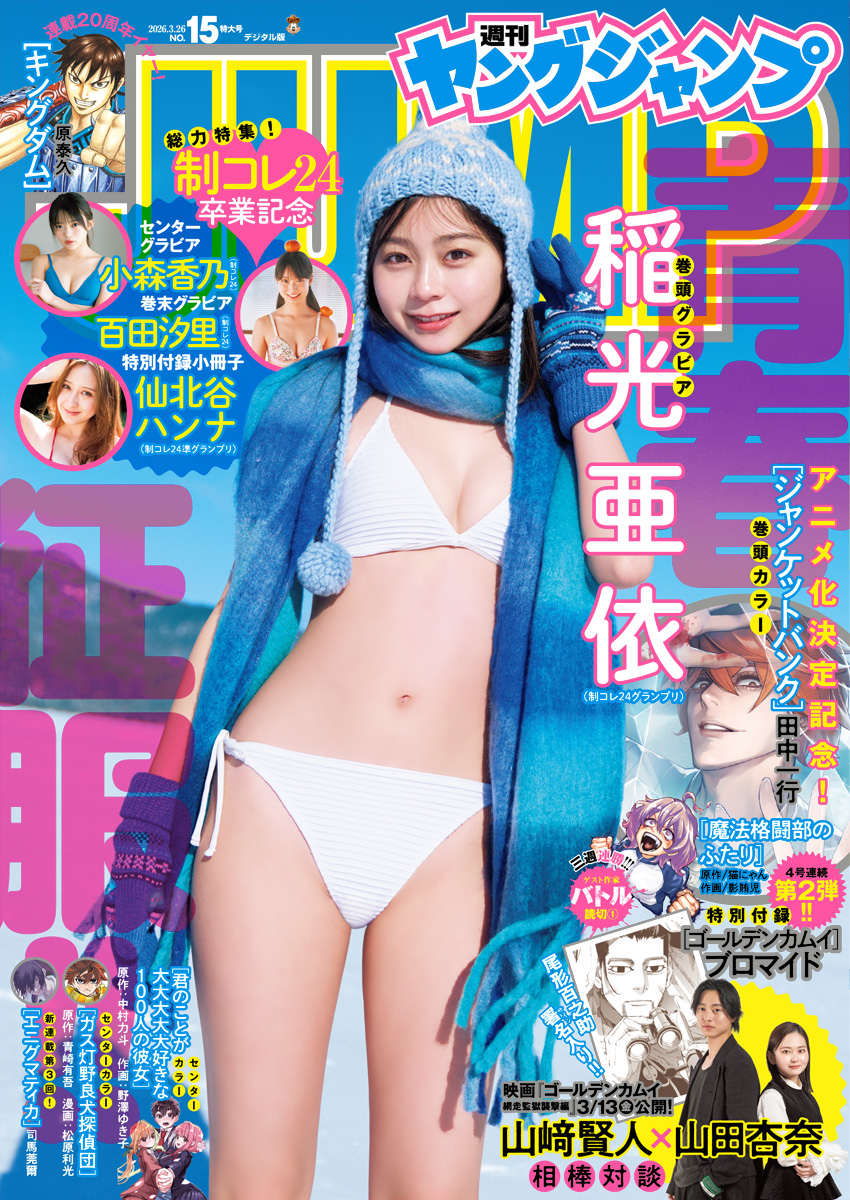 週刊ヤングジャンプ主催のオーディション企画「制コレ24」でグランプリを受賞し、Seventeenの「ミスセブンティーン」にも選ばれた稲光亜依(いなみつ あい=17歳)が、2026年3月12日発売のマンガ誌「週刊ヤングジャンプ」で、表紙&巻頭グラビアを飾りました。