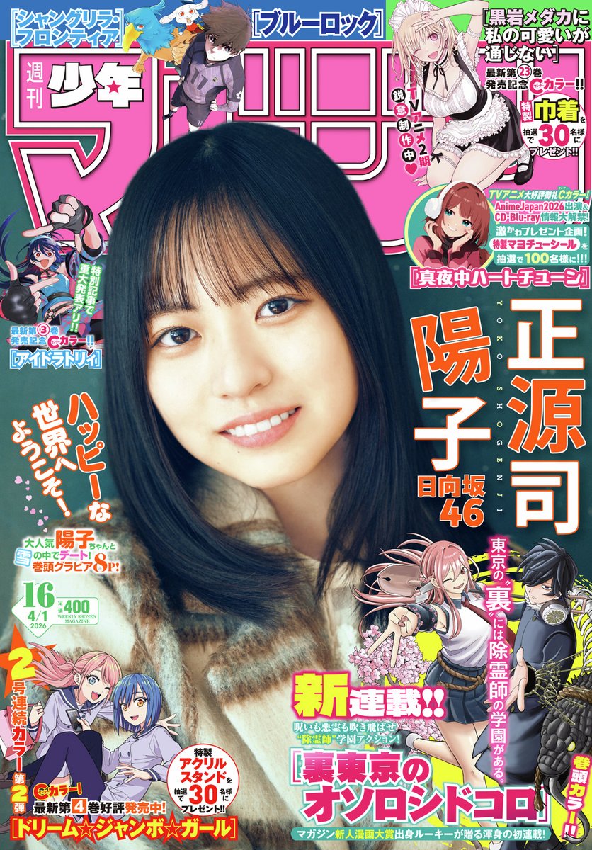 今年4月からニッポン放送「オールナイトニッポンX」の木曜パーソナリティを務める、日向坂46屈指の人気メンバー・正源司陽子(しょうげんじ ようこ=18歳)が、2026年3月18日発売のマンガ誌「週刊少年マガジン」で表紙&巻頭グラビアを飾りました。