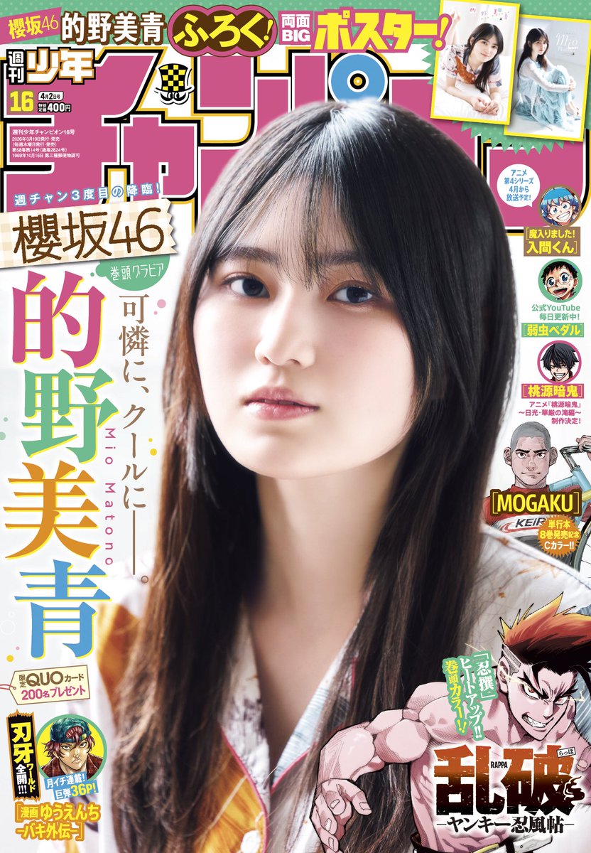 去年発売の櫻坂46の12thシングル『Make or Break』でセンターを務めたグループ屈指の人気メンバー・的野美青(まとの みお=19)が、2026年3月19日発売の『週刊少年チャンピオン』で、3度目の表紙&巻頭グラビアを飾りました。