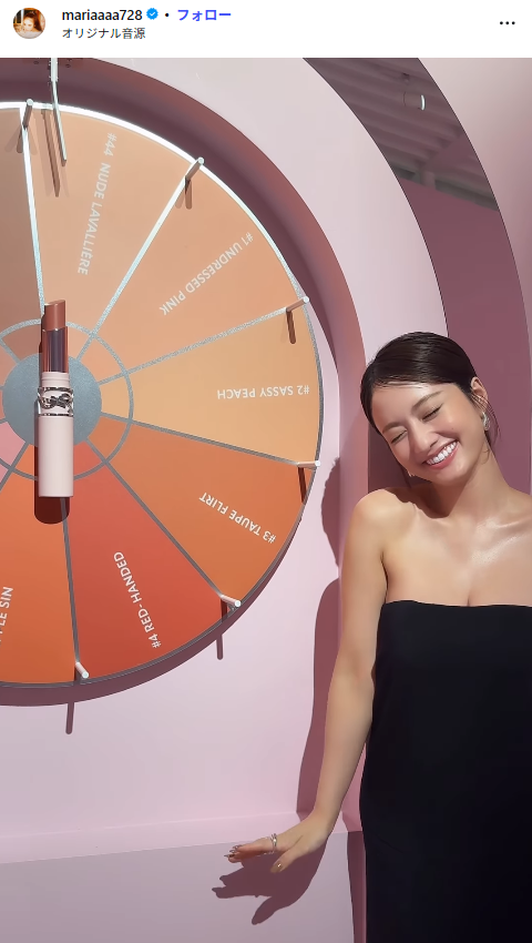 モデルやバラエティ番組『イッテQ』など多方面で活躍する谷まりあ(30)が、2026年4月9日、自身の公式Instagramを更新。ラグジュアリーブランド「イヴ・サンローラン」の新商品「YSL ラブヌード リップスティック」の発売記念イベントに出席したことを明かし、胸の谷間を大胆に露出したドレス姿の写真や動画を投稿すると、ファンから興奮の声が殺到していました。