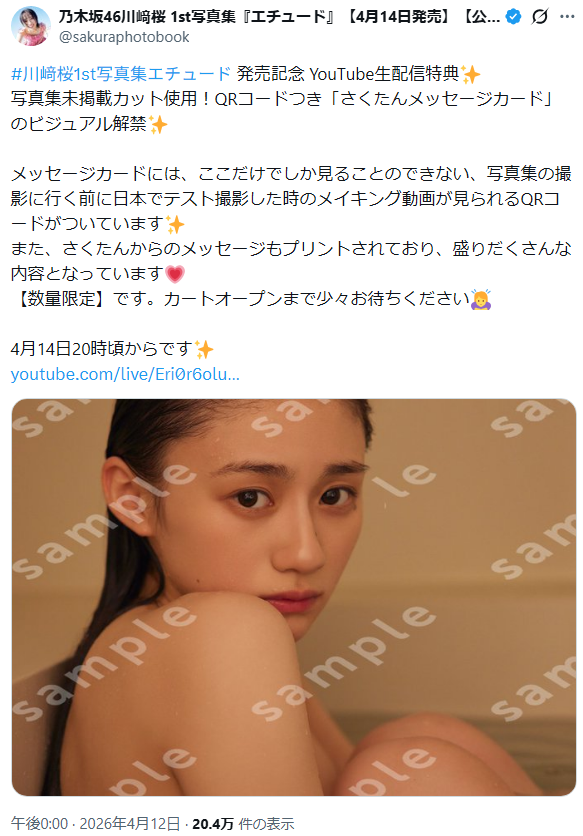 発売に先駆け、発売記念YouTube生配信の画面から購入すると貰える「さくたんメッセージカード」のビジュアルが解禁され、全裸に見える衝撃のお風呂入浴カットにファンから興奮の声が殺到していました。