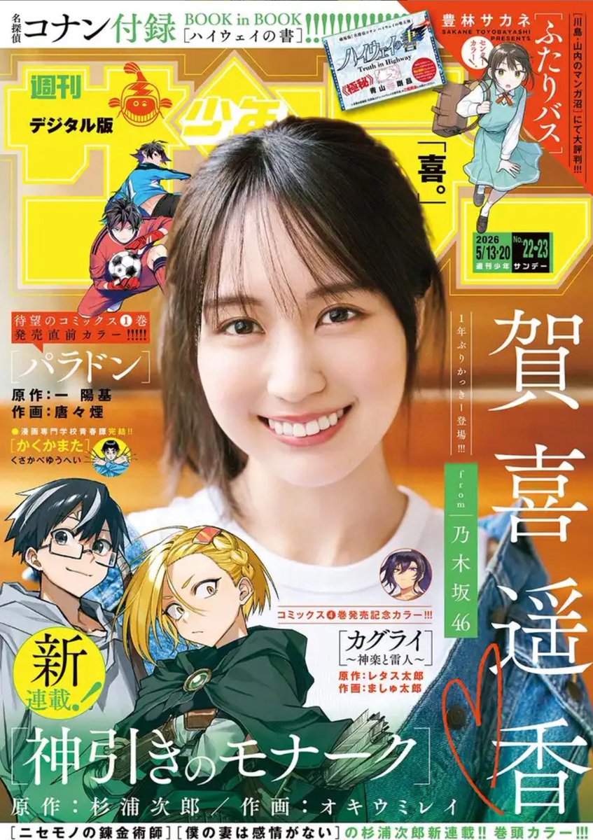 乃木坂46絶対的エースの“かっきー”こと賀喜遥香(かき はるか=24)が、2026年4月28日発売のマンガ誌「週刊少年サンデー」で、表紙&巻頭グラビアを飾りました。