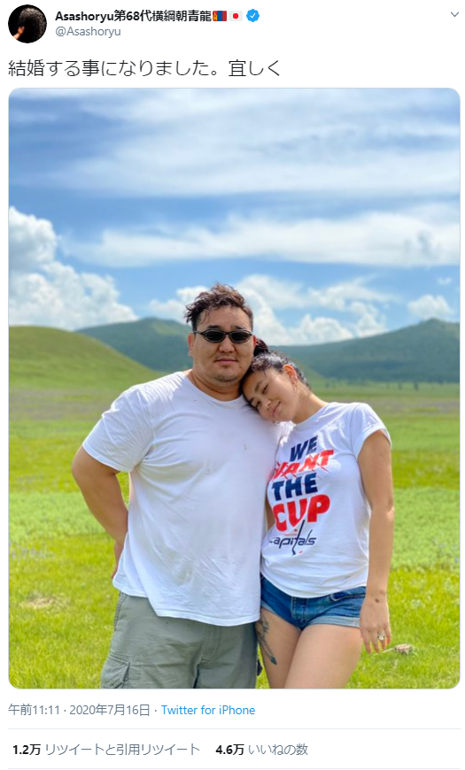 【画像】朝青龍が再婚した嫁、色気が凄いと話題にwwドルジがモンゴル女性と結婚し2S公開!元妻写真あり 芸能 X Facebook はてブ LINE コピー 2020.07.16 スポンサーリンク 元横綱朝青龍ことドルゴルスレン・ダグワドルジ氏(39)が、2020年7月16日、自身のツイッターを更新。モンゴル人女性と再婚することを発表し、夫人との2ショット写真を投稿しました。 朝青龍の再婚嫁画像、元嫁について、2chの反応などをまとめました。 続きを読む