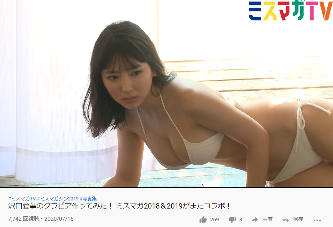 2020年7月16日に『ミスマガTV』に投稿された新着動画『沢口愛華のグラビア作ってみた! ミスマガ2018&2019がまたコラボ!』では、ミスマガジン2018グランプリの沢口愛佳(17)が水着姿で登場。他のミスマガジンメンバーが撮影し、グラビアを作る模様がお届けされました。この動画に対しコメント欄で絶賛の声が寄せられていました。
