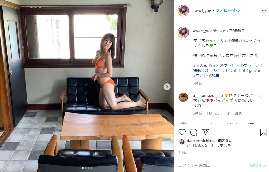 発売日に合わせ、自身のInstagramに推定Eカップの豊満なバストがあらわになった水着姿のオフショット写真を投稿し、ファンのからは「やわらかそう」「興奮しちゃう!」「最高です」「体は大人の女やなぁ」と絶賛の声が寄せられていました。