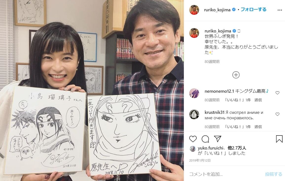 タレントの小島瑠璃子(26)が、2020年8月1日発売の『週刊ポスト』に、大人気漫画『キングダム』の作者・原泰久氏(45)との熱愛を報じられました。