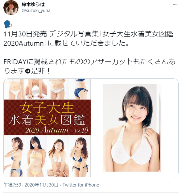 現役音大生の鈴木ゆうは、水着姿画像が可愛すぎる!「女子大生水着美女図鑑」をPR!プロフィール有 グラビアアイドル・水着姿 X Facebook はてブ LINE コピー 2020.12.01 スポンサーリンク https://twitter.com/suzuki_yuha/status/1333365151102160896 ピアノ専攻の現役音大生で女優の鈴木ゆうは(22)が、2020年11月30日、自身のTwitterを更新。同日発売のデジタル写真集「女子大生水着美女図鑑2020Autumn」に出演していることを明かし、水着姿のカットを公開したところ、ファンから絶賛の声が寄せられていました。 鈴木ゆうはのプロフィール、水着姿画像などをまとめました。 続きを読む